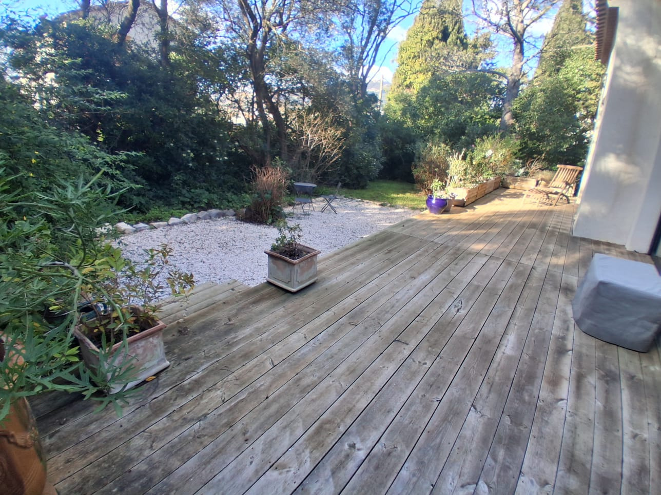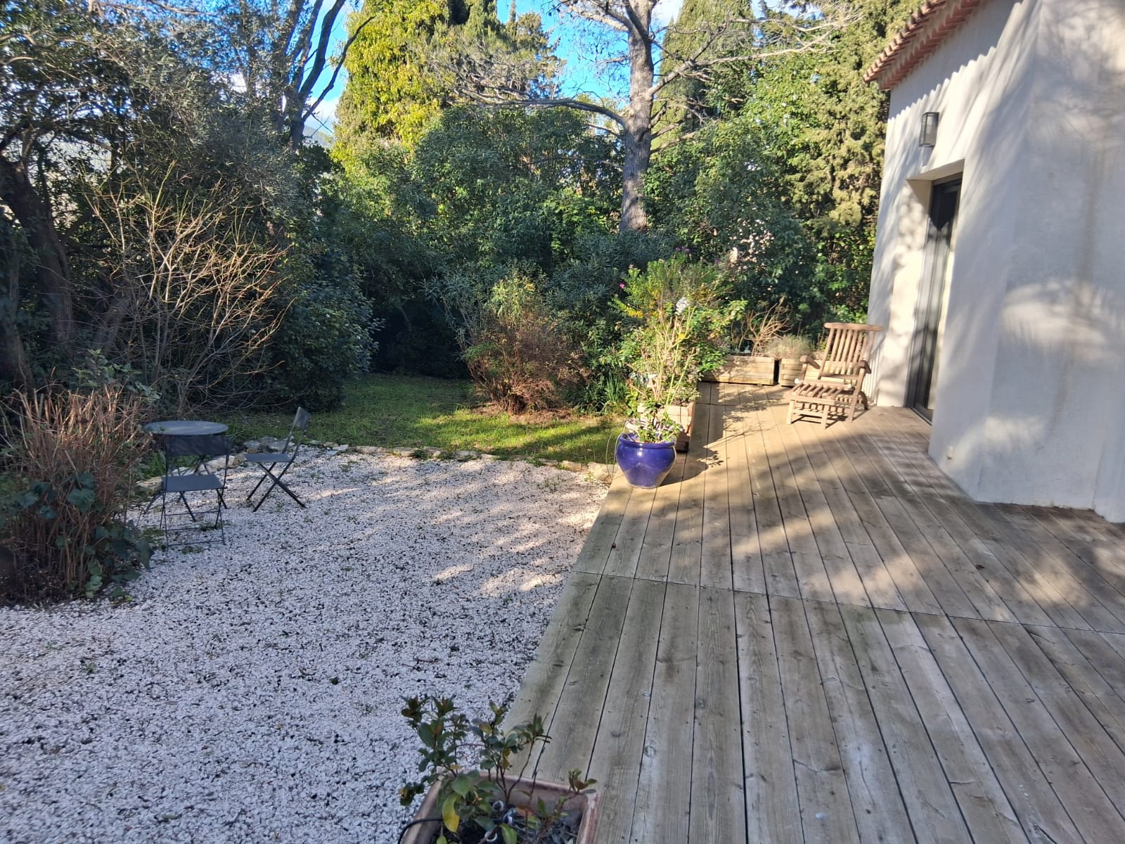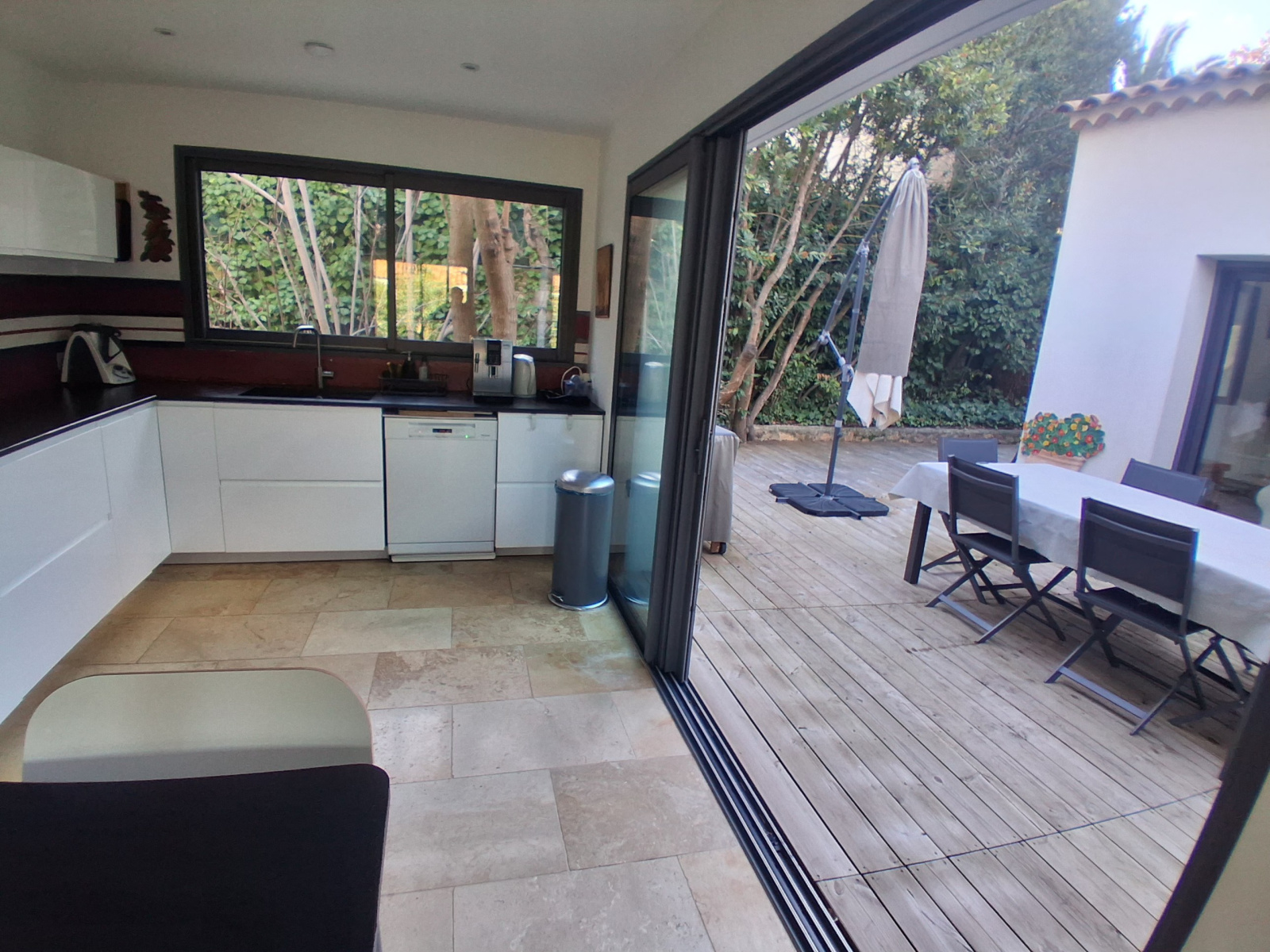 LA GARDE - SAINTE-MARGUERITE - Idéalement située, nichée dans un écrin de verdure, proche plages, au calme absolu et en fond d'impasse, maison récente entièrement de plain-pied, édifiée sur une parcelle de terrain de 830 m², elle comprend : hall d'entrée, dégagement avec placard desservant séjour avec cheminée donnant sur terrasse, cuisine avec verrière ouvrant sur salle à manger, première chambre parentale avec salle de bains et placards, seconde suite avec chambre et salle d'eau (douche à l'italienne attenante), deux chambres, salle d'eau avec douche italienne, water-closet, accès par escalier à une pièce sous-combles - A l'extérieur, terrasses, salle à manger d'extérieur, patio, jardin arboré, plusieurs places de parking intérieures - Grand garage - Possibilité surélever d'un étage et emprise au sol résiduelle - Belles prestations, cheminée double foyer, chauffage avec pompe à chaleur par gainage, climatisation, arrosage automatique, adoucisseur d'eau, alarme, accès PMR - Rare à la vente, à visiter sans tarder !