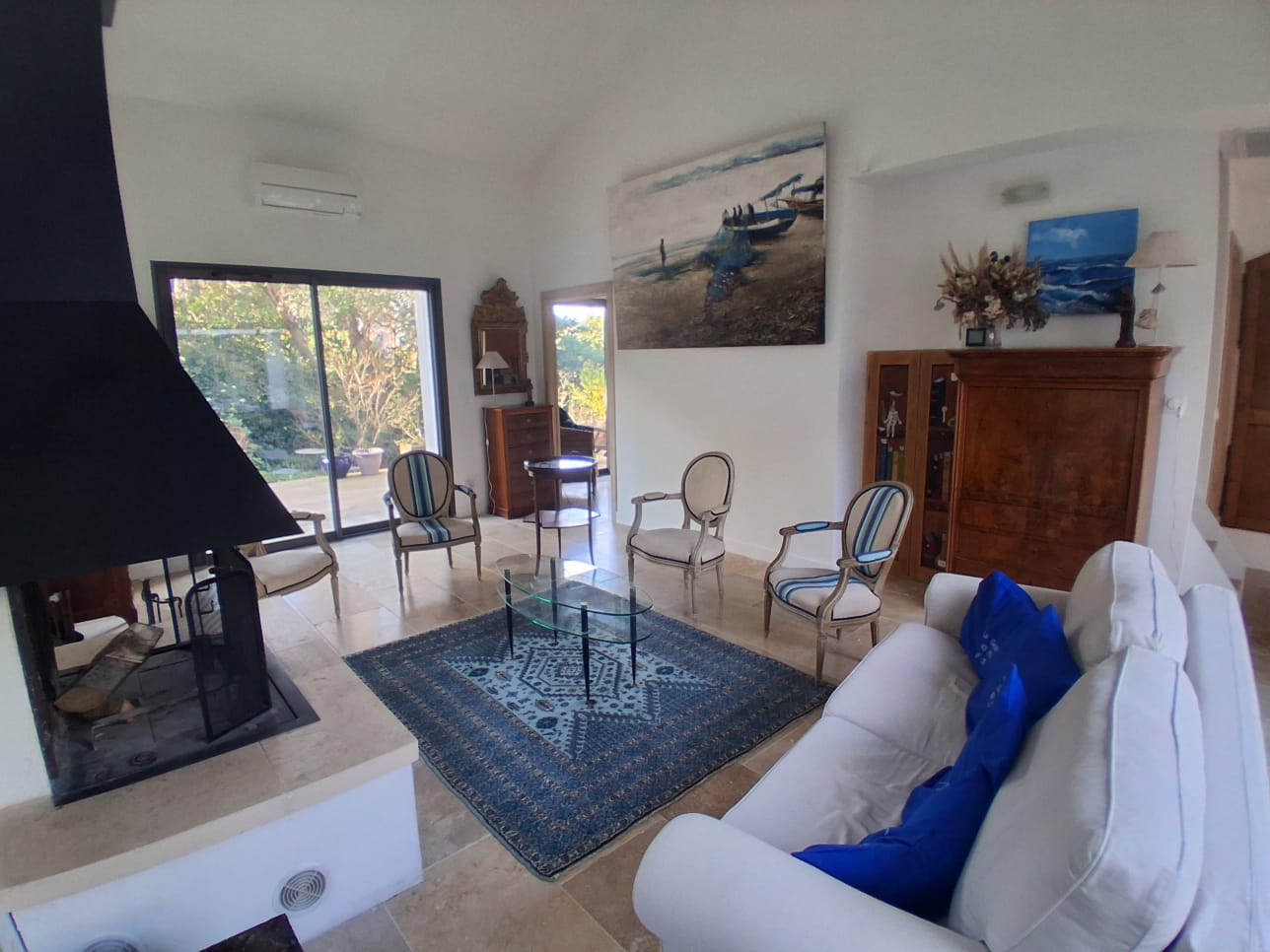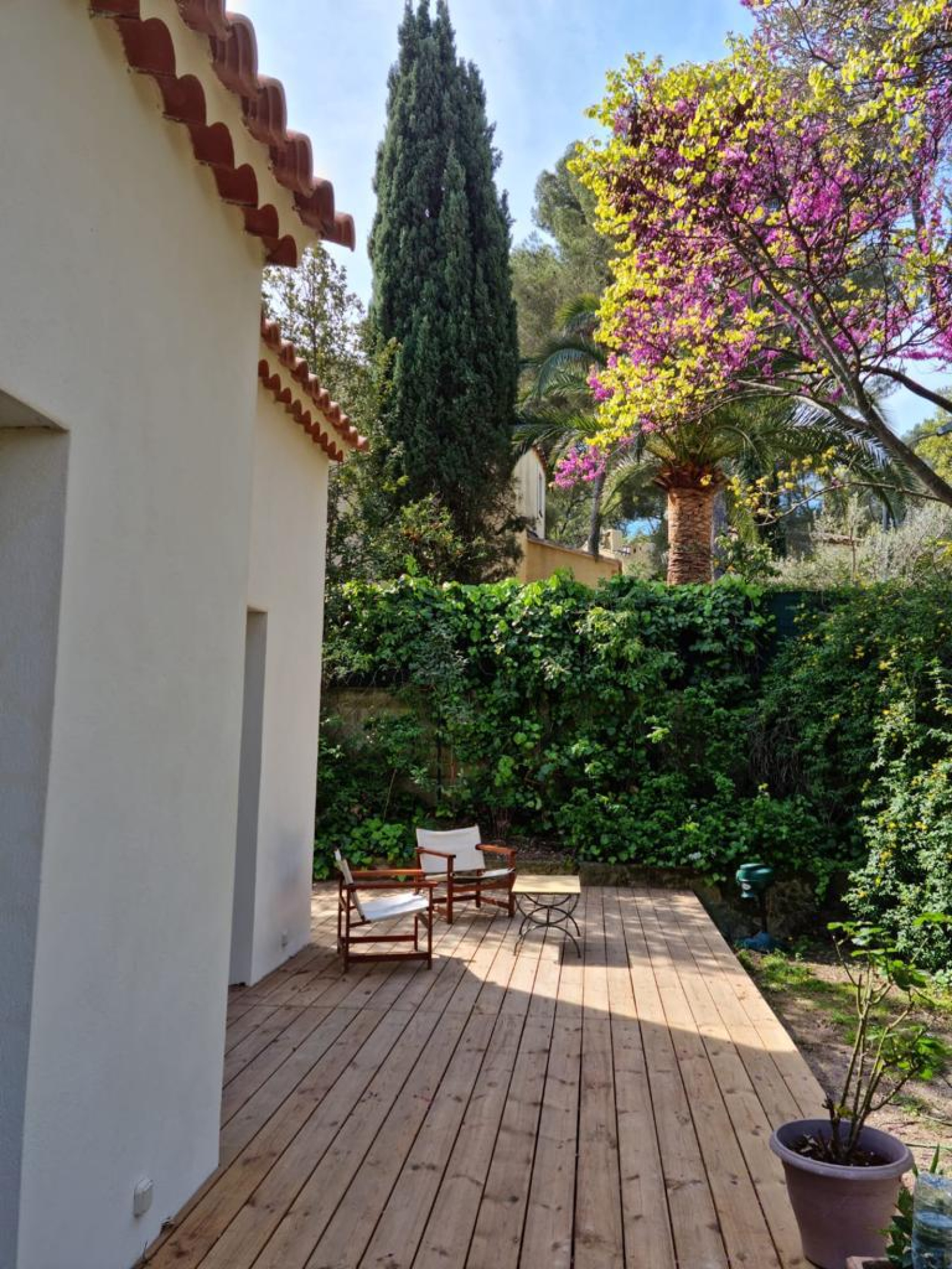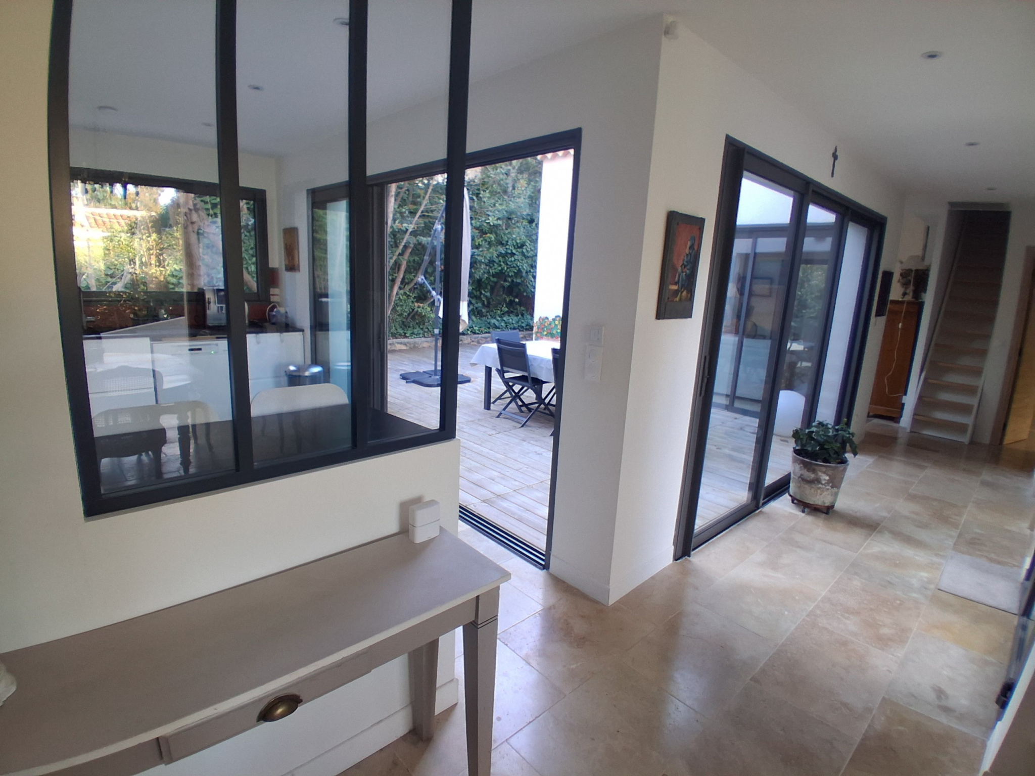 LA GARDE - SAINTE-MARGUERITE - Idéalement située, nichée dans un écrin de verdure, proche plages, au calme absolu et en fond d'impasse, maison récente entièrement de plain-pied, édifiée sur une parcelle de terrain de 830 m², elle comprend : hall d'entrée, dégagement avec placard desservant séjour avec cheminée donnant sur terrasse, cuisine avec verrière ouvrant sur salle à manger, première chambre parentale avec salle de bains et placards, seconde suite avec chambre et salle d'eau (douche à l'italienne attenante), deux chambres, salle d'eau avec douche italienne, water-closet, accès par escalier à une pièce sous-combles - A l'extérieur, terrasses, salle à manger d'extérieur, patio, jardin arboré, plusieurs places de parking intérieures - Grand garage - Possibilité surélever d'un étage et emprise au sol résiduelle - Belles prestations, cheminée double foyer, chauffage avec pompe à chaleur par gainage, climatisation, arrosage automatique, adoucisseur d'eau, alarme, accès PMR - Rare à la vente, à visiter sans tarder !